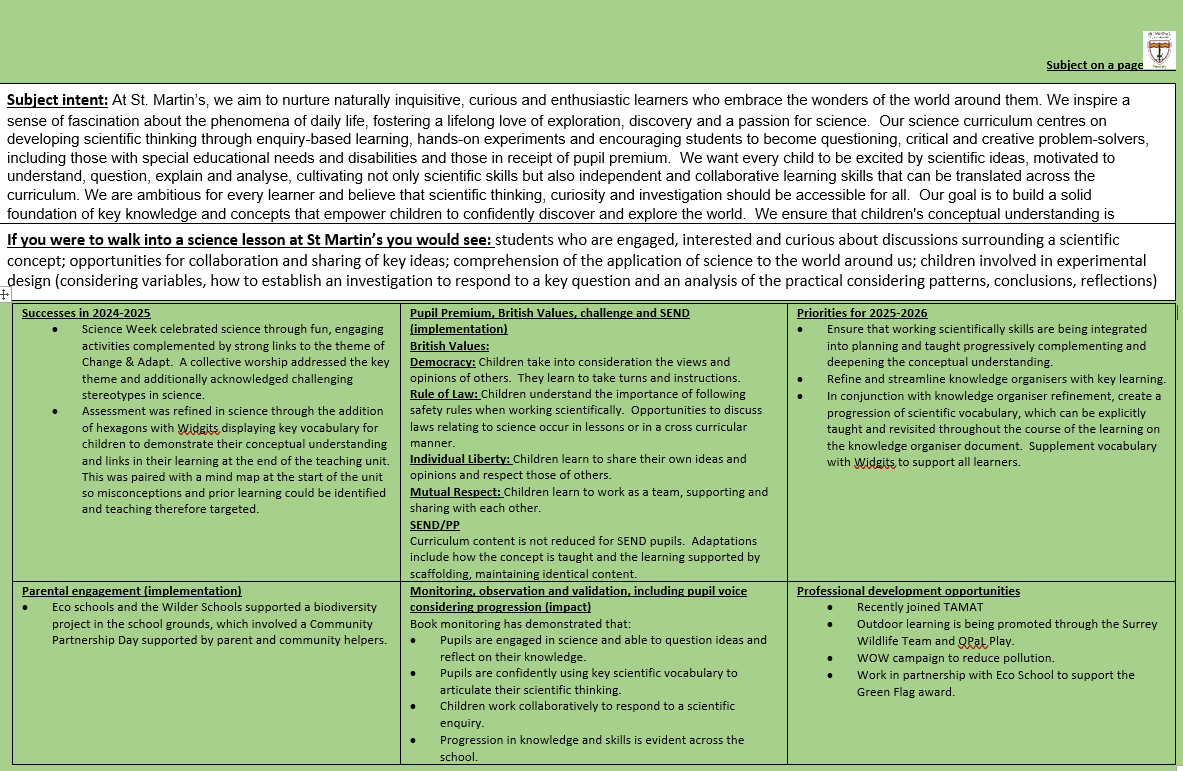 We intend to drive ambition in our learners through science lessons that are engaging, memorable and relevant.
